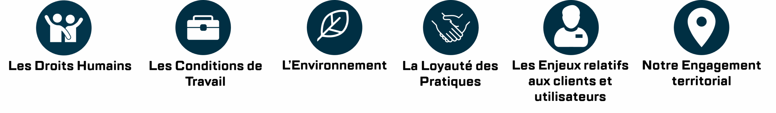 C’est dans ce cadre que nos entreprises ont depuis de nombreuses années pris des initiatives dans le domaine de la RSE. Pour aller plus loin, nous avons structuré notre démarche dès 2022 et avons adopté une charte RSE qui se décline autour de 6 piliers :